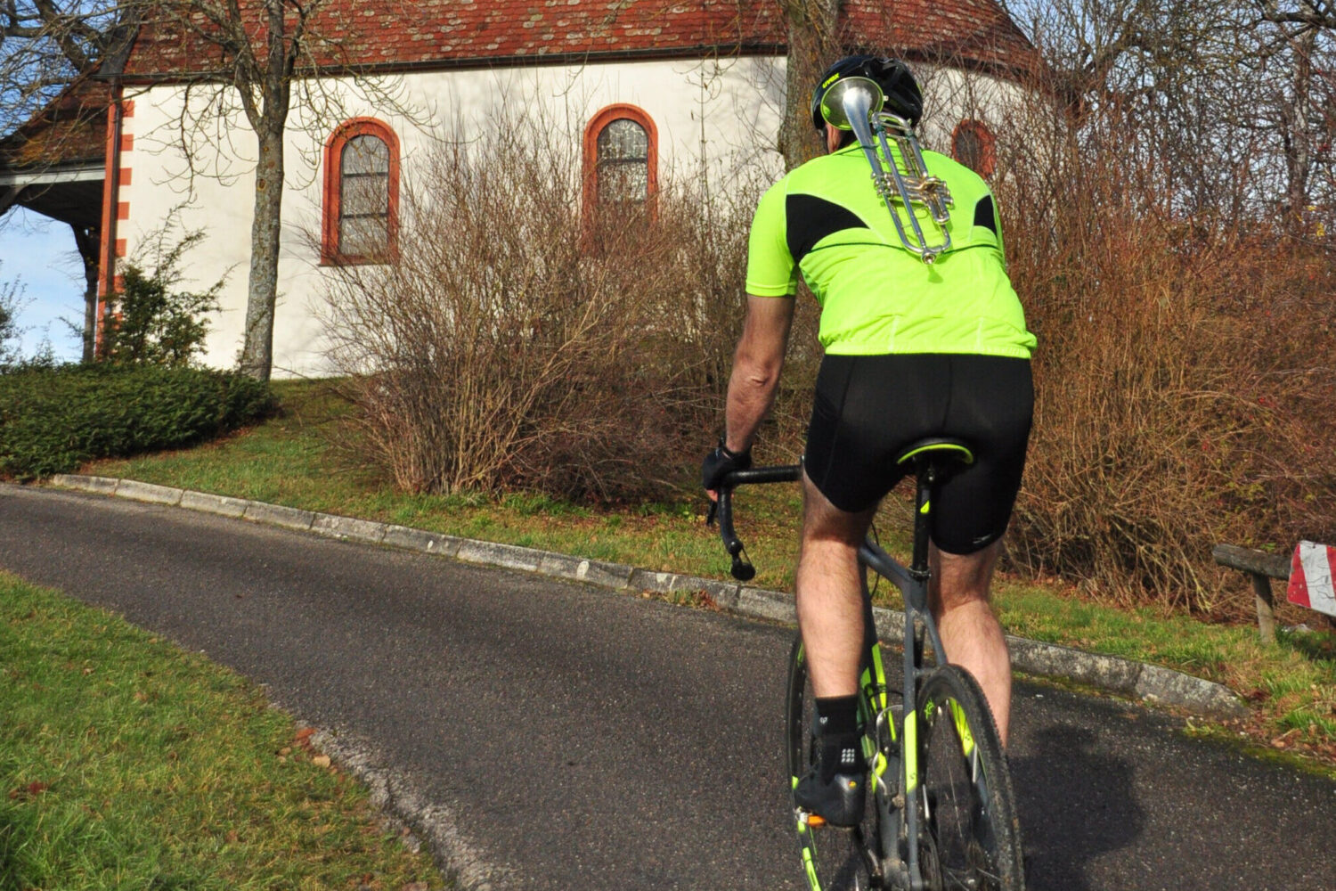 Radelnder Trompeter wirbt um Spenden für Indien und Nepal