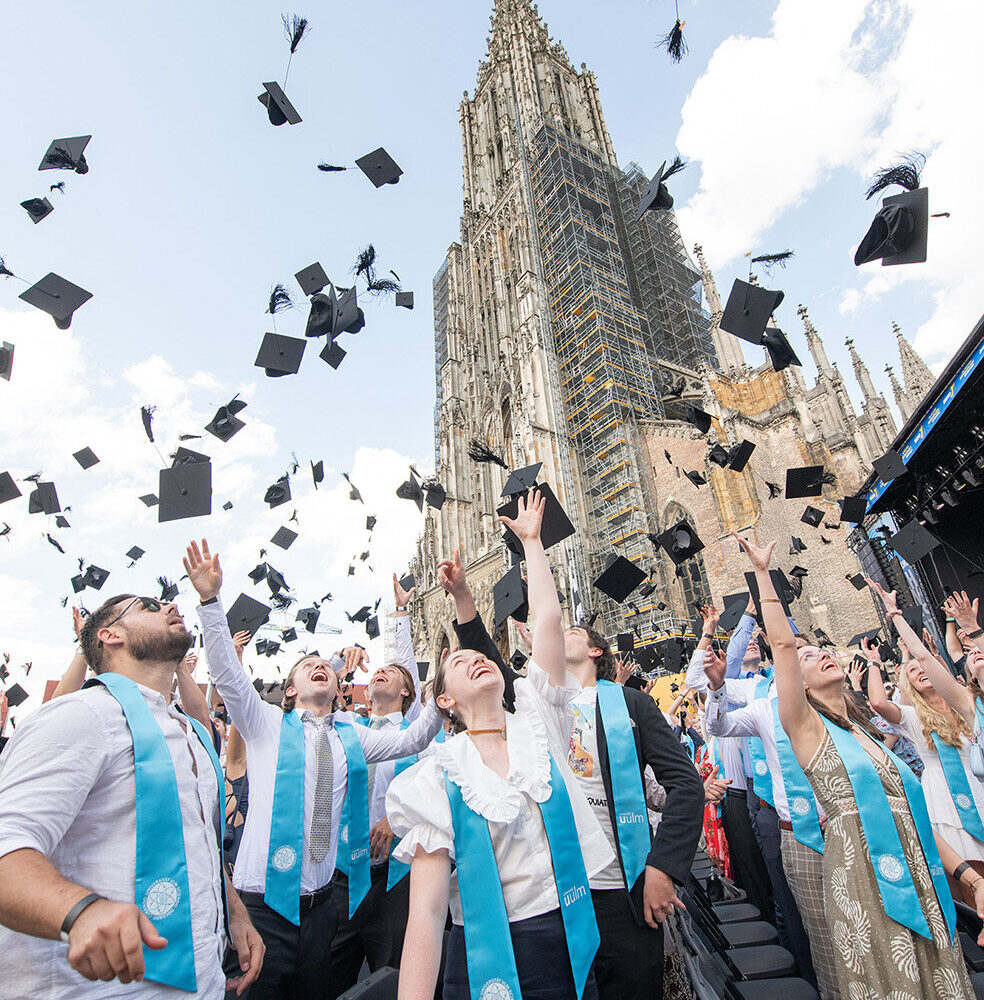 Oft sind akademische Abschlussfeiern interne Veranstaltungen. Nicht so in Ulm. Dort finden sie öffentlich im Herzen der Stadt statt. Auf dem Münsterplatz und mit dem OB.