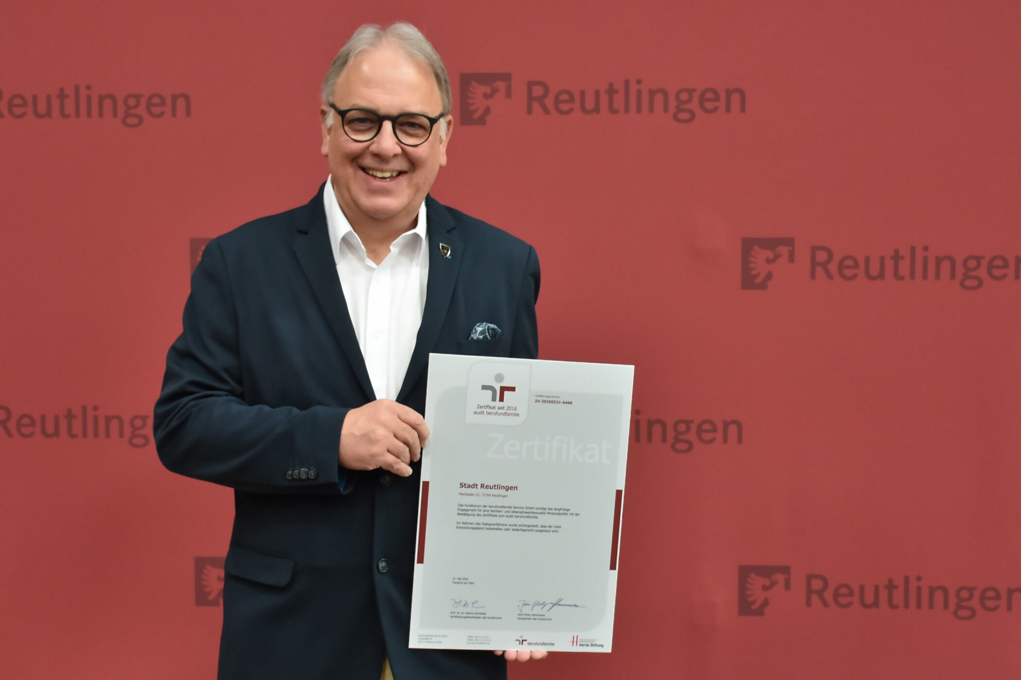 STADT REUTLINGEN Presseamt)Reutlingen. Für die besondere Anerkennung der langjährigen und nachhaltigen Gestaltung familiengerechter Arbeitsbedingungen hat die Stadtverwaltung Reutlingen nach erfolgreichem Abschluss des Dialogverfahrens das Zertifikat mit Prädikat erhalten. Das Dialogverfahren steht Arbeitgebern offen, die seit mindestens neun Jahren mit dem Audit zertifiziert sind, wie die Stadt Reutlingen nun mitteilte.