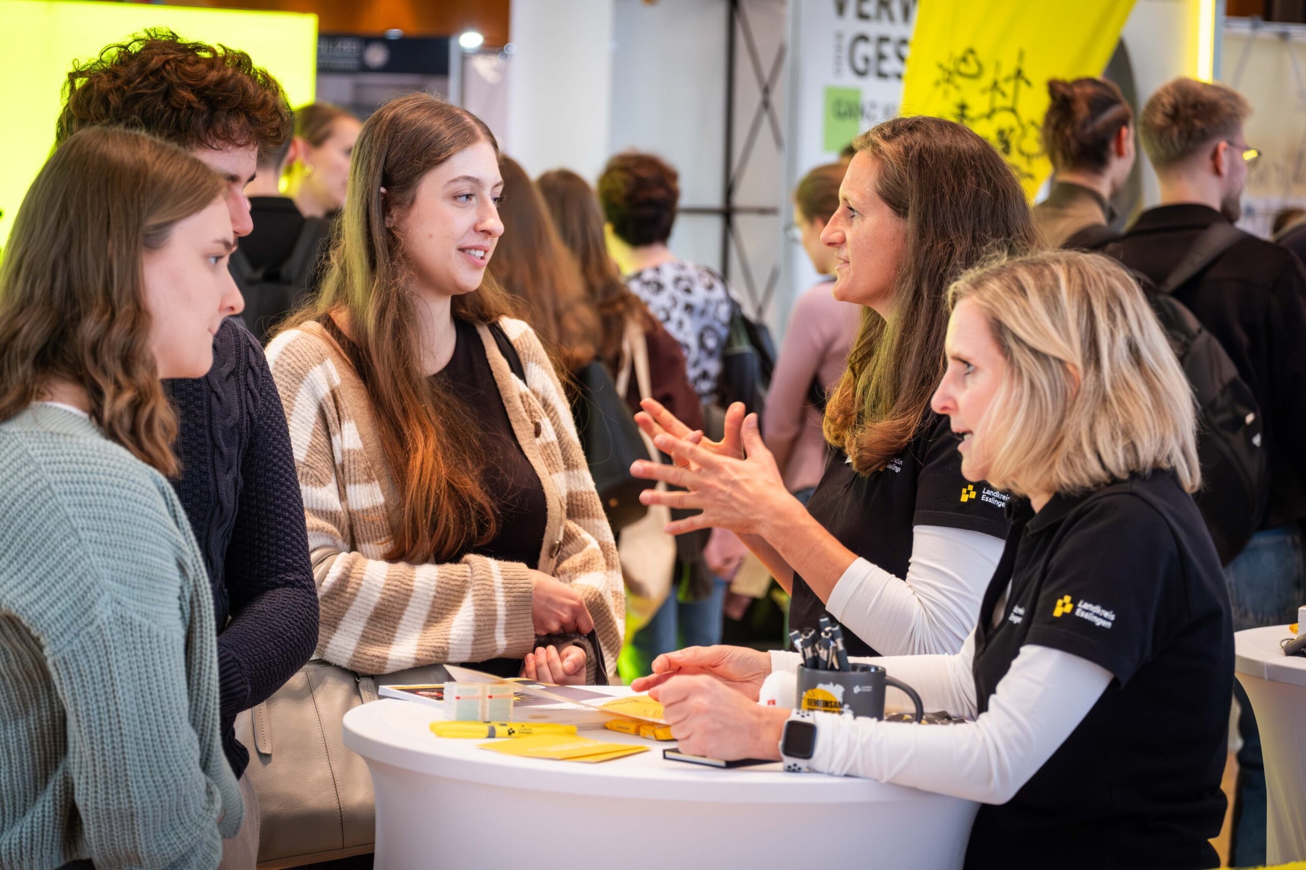 Studierende der Hochschule für öffentliche Verwaltung informieren sich bei der Karrieremesse bei Personalern und Recruiterinnen aus dem öffentlichen Dienst.