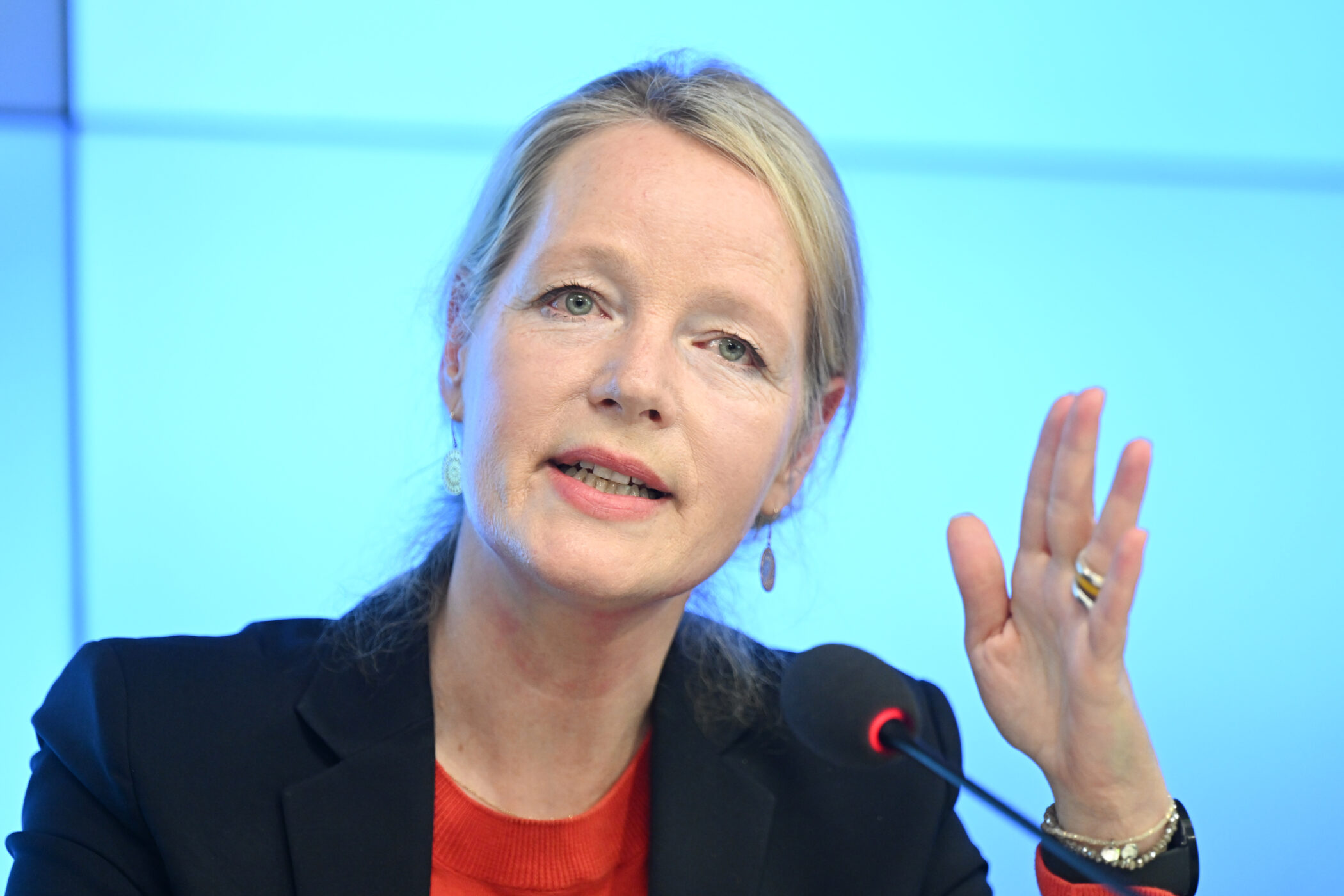 Archivfoto: Thekla Walker spricht im Landtag bei einer Pressekonferenz.