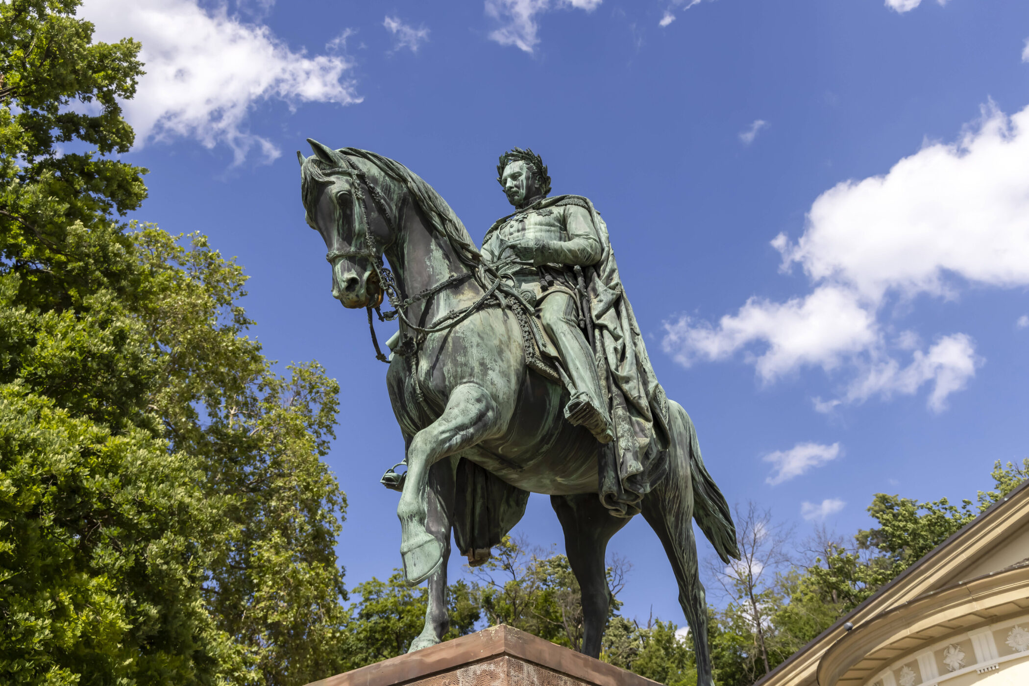 Beim Kurhaus Bad Cannstatt steht ein Reiterstandbild des Königs Wilhelm I. aus dem Jahr 1875. Es stammt von Johann Halbig.