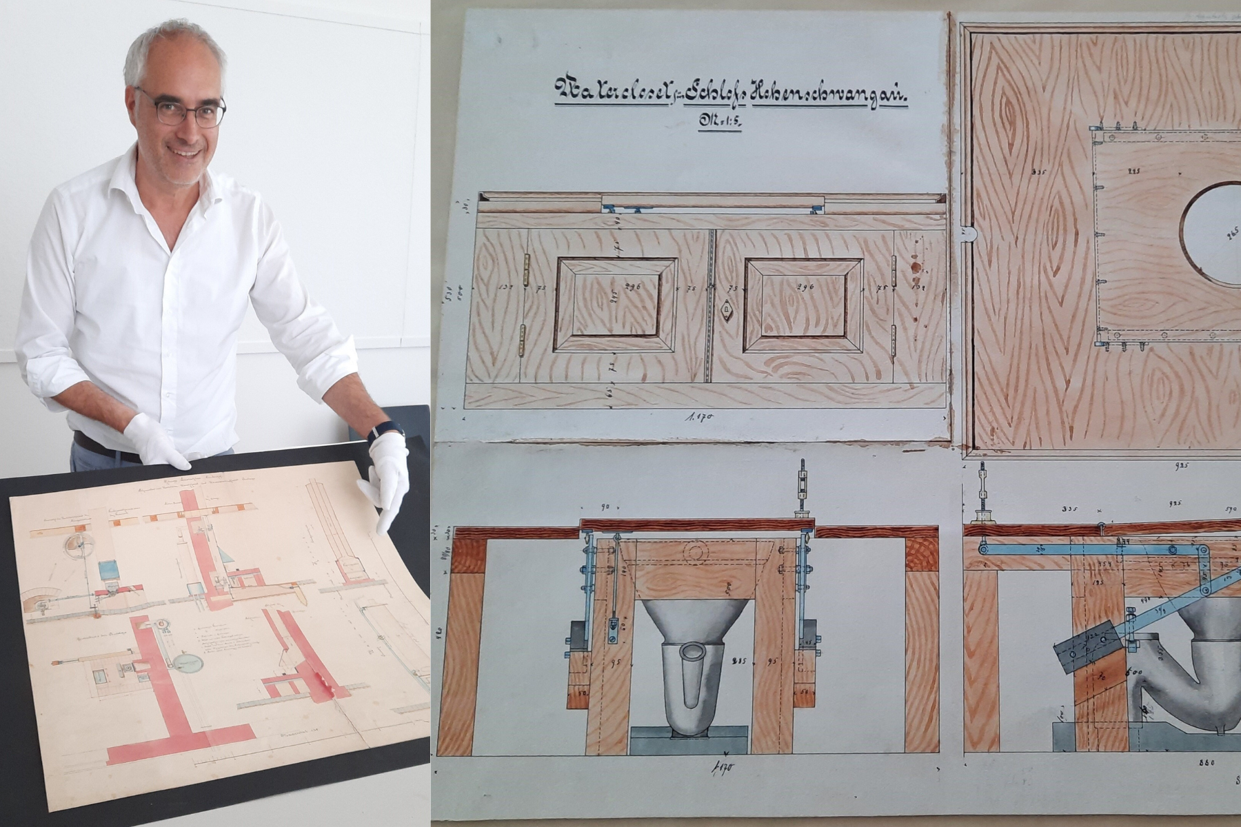 Vor 150 Jahren bedeuteten Toiletten mit eingebauter Spülung und ein „Whirlpool“: Technik und Ingenieurskunst auf allerhöchstem Niveau, sagt Alexander Wiesneth, Hauptkonservator in der Bauabteilung der Bayerischen Schlösserverwaltung. Als Experte ist er für die Königsschlösser mit der Auswertung der rund 200 Installationspläne beauftragt. Von deren Existenz erfuhr er im vergangenen Herbst, als er für eine Publikation mehrere Unternehmen anschrieb, die beim Bau von Ludwigs Schlössern mitgearbeitet hatten.