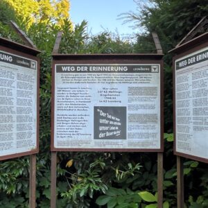 Neben der Gedenkstätte im ehemaligen Engelbergtunnel gibt es auch einen Weg der Erinnerung. Er führt vom Grab auf dem alten Friedhof in der Seestraße weiter zum heutigen Altenheim Samariterstift. Auf dem Gelände standen damals Baracken des KZ, in denen die Menschen zusammengepfercht waren. Auf dem Blosenberg erinnert ein Kreuz an das ehemalige Massengrab und in der Blosenbergkirche wird der Menschen gedacht, die im KZ-Leonberg umkamen. Auch am Bahnhof erinnert eine Tafel daran, dass die KZ-Häftlinge hier ankamen.