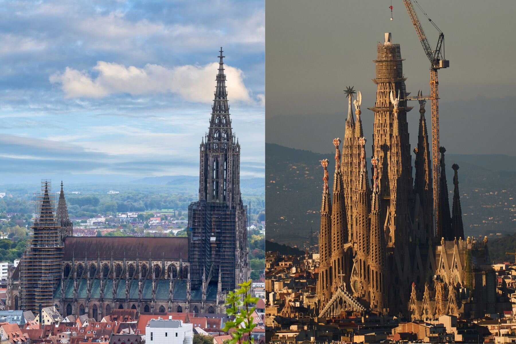 Die Sagrada Familia, deren Bau der weltberühmte Architekt Antoni Gaudí 1882 begann, also gerade einmal acht Jahre nach Vollendung des Ulmer Turms, wächst allerdings noch weiter, auch in die Höhe: Mit einem dann 17 Meter hohen Kreuz auf dem zentralen Jesus-Turm soll eine Gesamthöhe von 172,5 Metern erreicht werden.