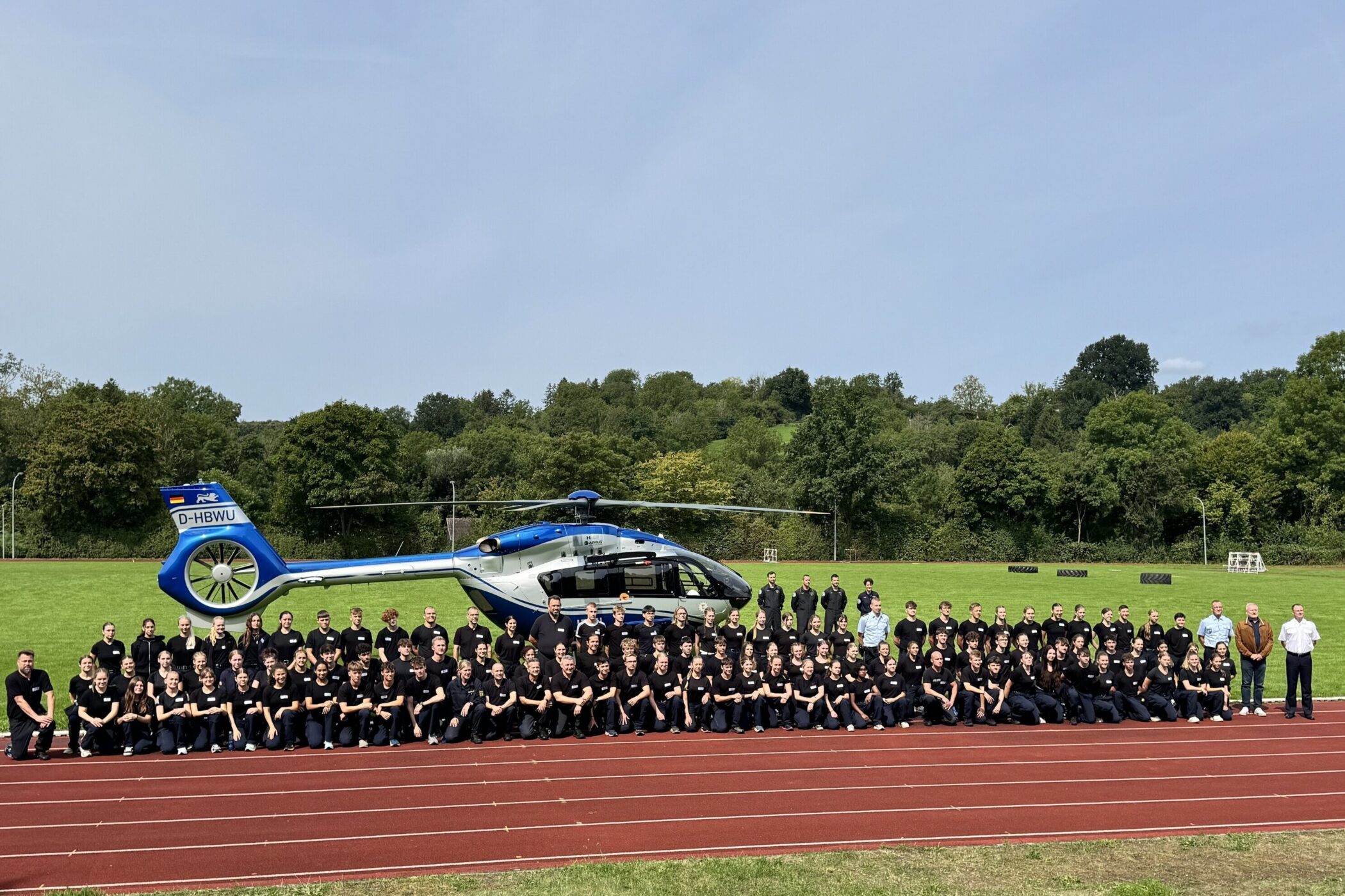 Die Teilnehmer der siebten Polizei-Challenge erhielten am Mittwochvormittag Besuch von Innenstaatssekretär Thomas Blenke. An diesem Tag war auch ein Polizeihubschrauber vor Ort.