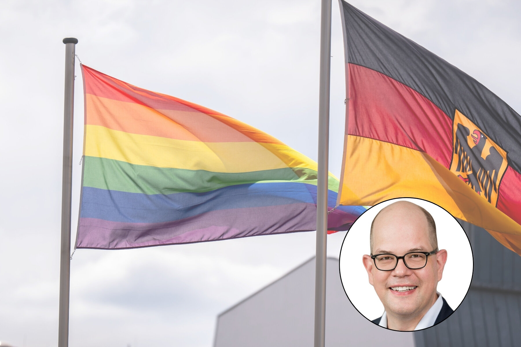 Wenn die Regenbogenflagge neben der Deutschlandfahne weht, ergibt sich das Bild einer toleranten Nation.