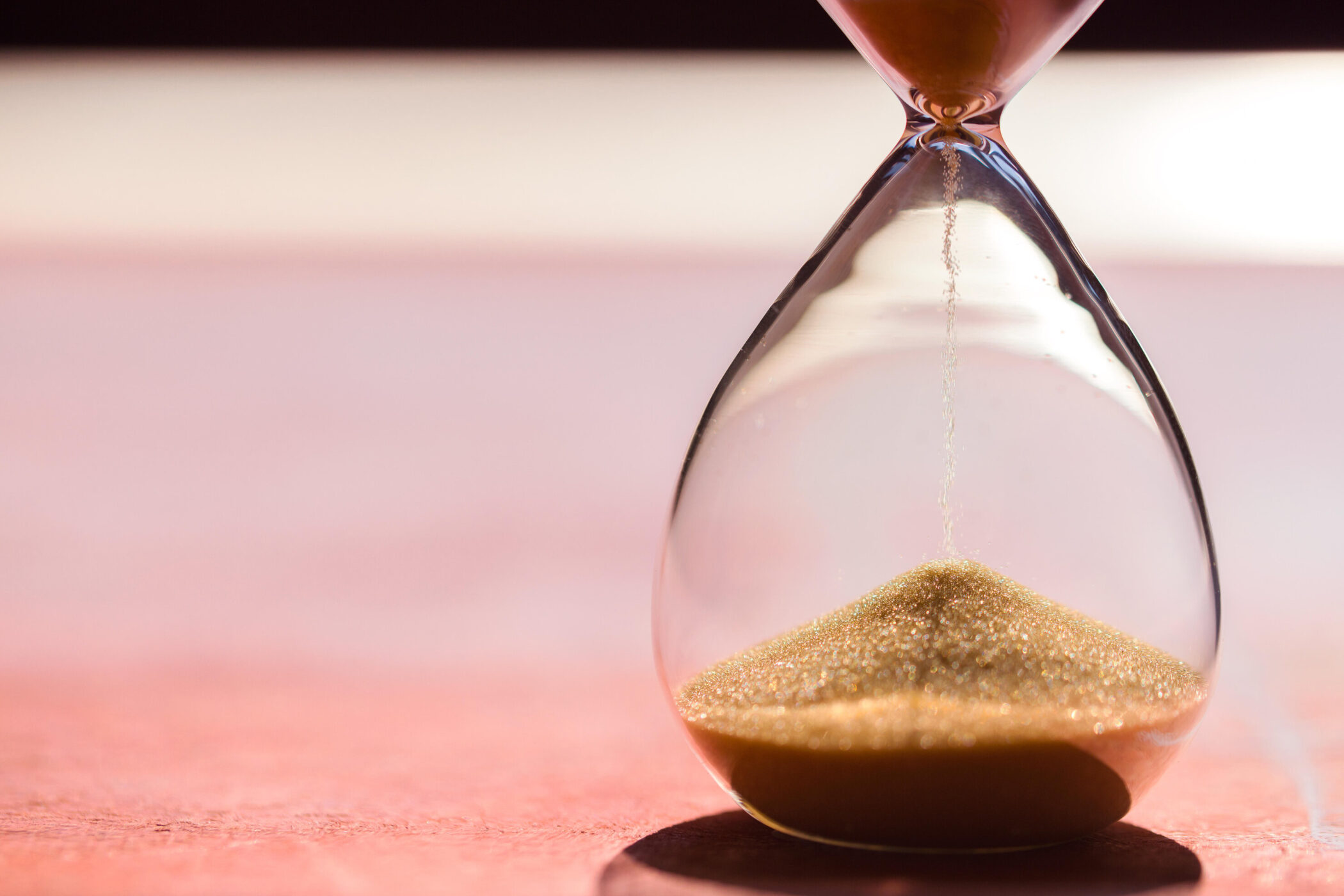 An einer Sanduhr lässt sich beobachten, wie die Zeit verrinnt.