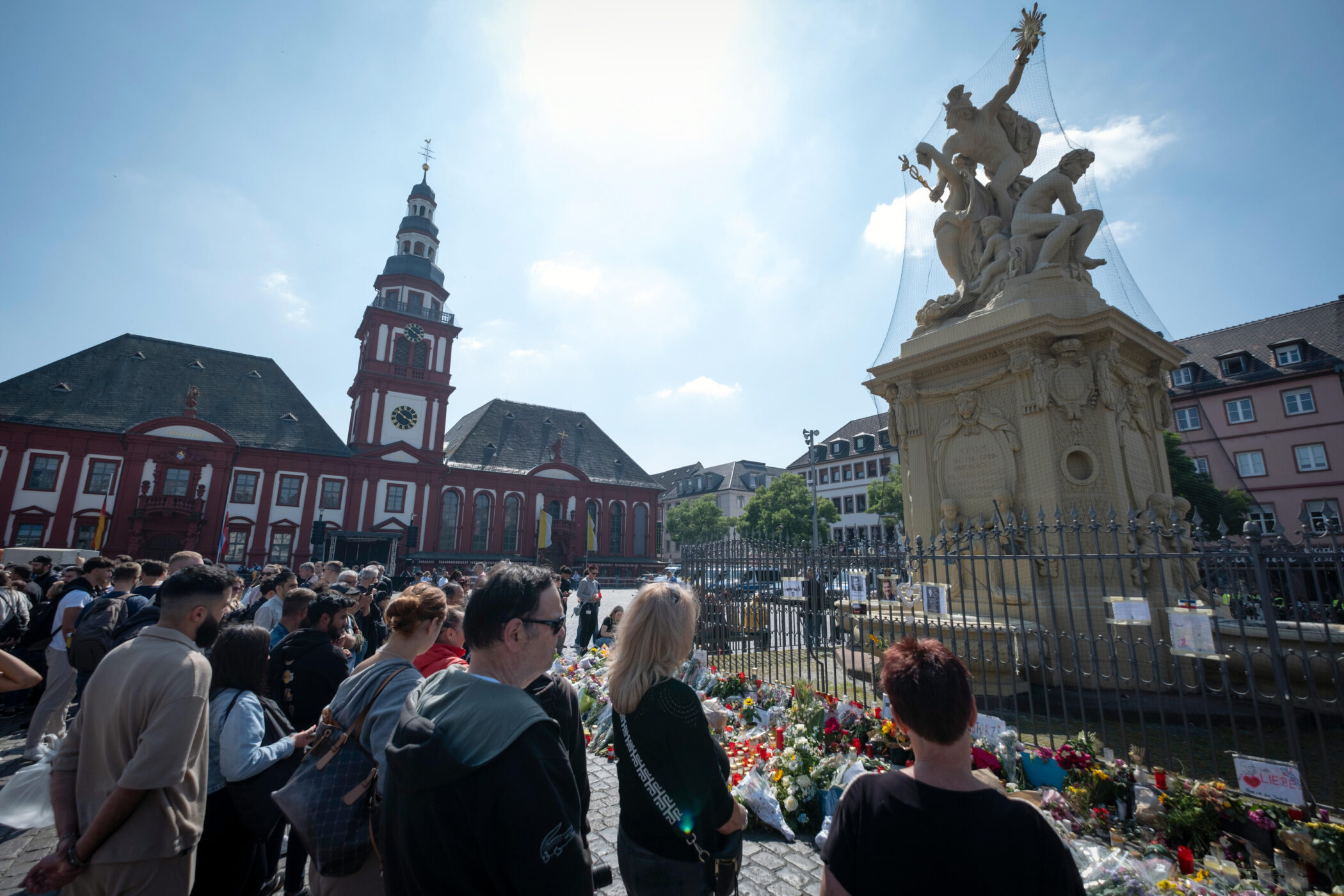 Menschen trauern in Mannheim um einen Polizeibeamten, der nach einer Messerattacke gestorben ist.