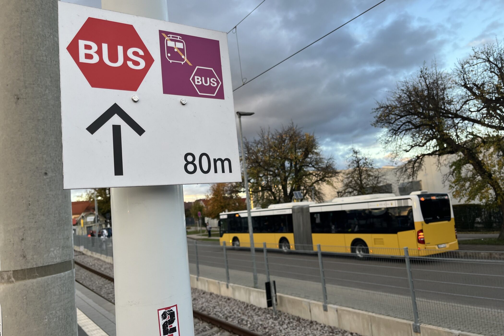 Vorläufig heißt es noch: Runter vom Bahnsteig, da hinten kommt der Bus. Ab 14. Dezember soll dann wieder die Schönbuchbahn fahren.