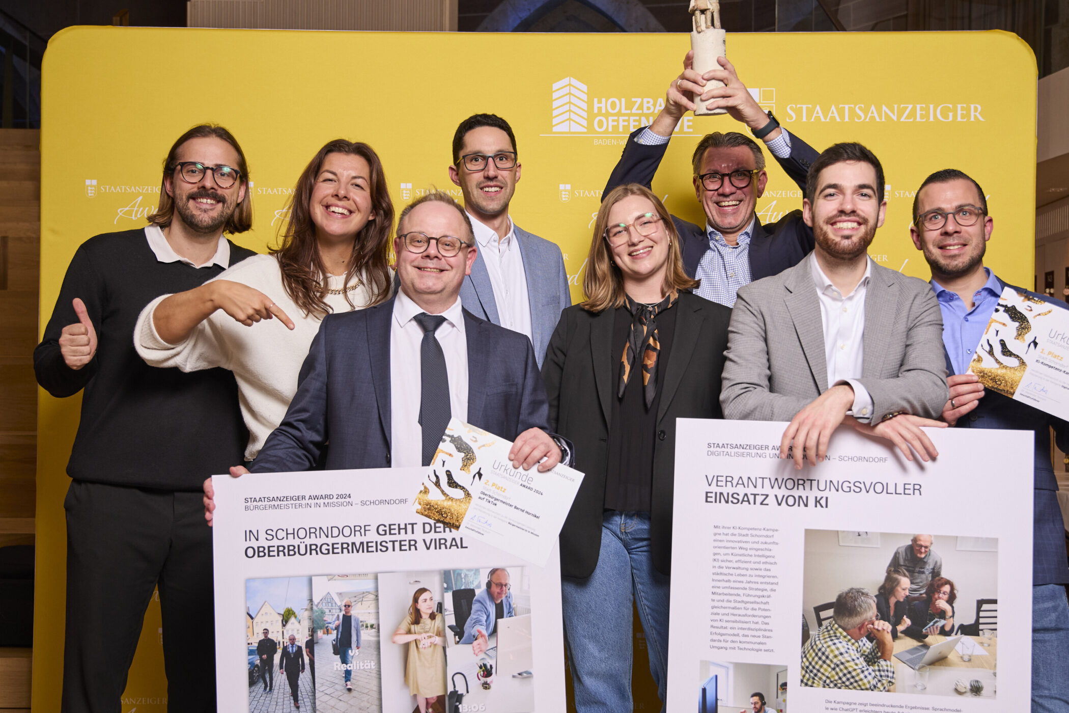 Den Staatsanzeiger-Award gewann Schorndorf für ein KI-Projekt. Oberbürgermeister Bernd Hornikel (Dritter von links) war zudem für ein Tik-Tok-Video nominiert.