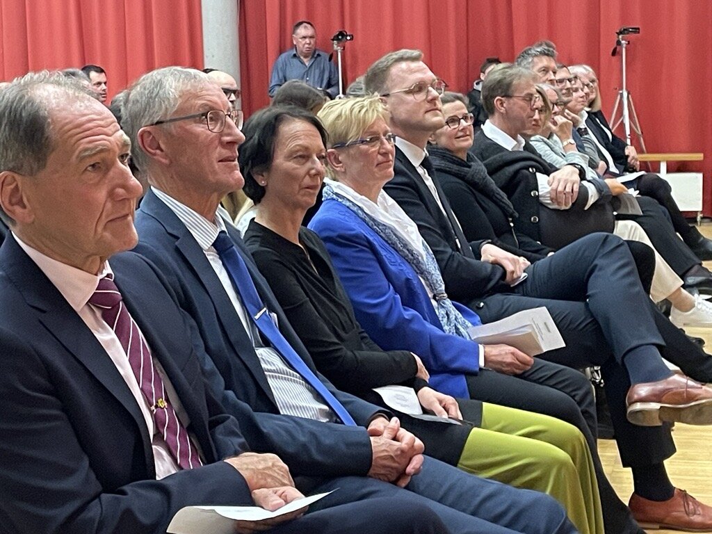 Die Themen Tatkraft, Menschlichkeit und klare Haltung zogen sich wie ein roter Faden durch die Reden an diesem Abend in der Aula des Schulzentrums in Rutesheim. So sprach der Personalratsvorsitzende Stephan Wensauer von einem Wirken, das von Engagement und Verantwortungsbewusstsein geprägt war. Auch während der Corona-Krise habe Widmaier stets nach pragmatischen Lösungen gesucht. Es sei mit Augenmaß gehandelt worden. Er spricht von einem konstruktiven Dialog zwischen der Bürgermeisterin und dem Personalrat. „Sie haben uns nicht nur als Gremium wahrgenommen, sondern als Partner zum Wohle der Mitarbeitenden bei der Stadt“, so Wensauer. Und er erinnert an die eigenen Worte Widmaiers: „Eine Stadt ist niemals die Leistung einer einzelnen Person. Eine Stadt lebt durch die Menschen, die Tag für Tag für sie arbeiten – mit Fachlichkeit, mit Engagement, mit Herz und oft auch mit Geduld.“