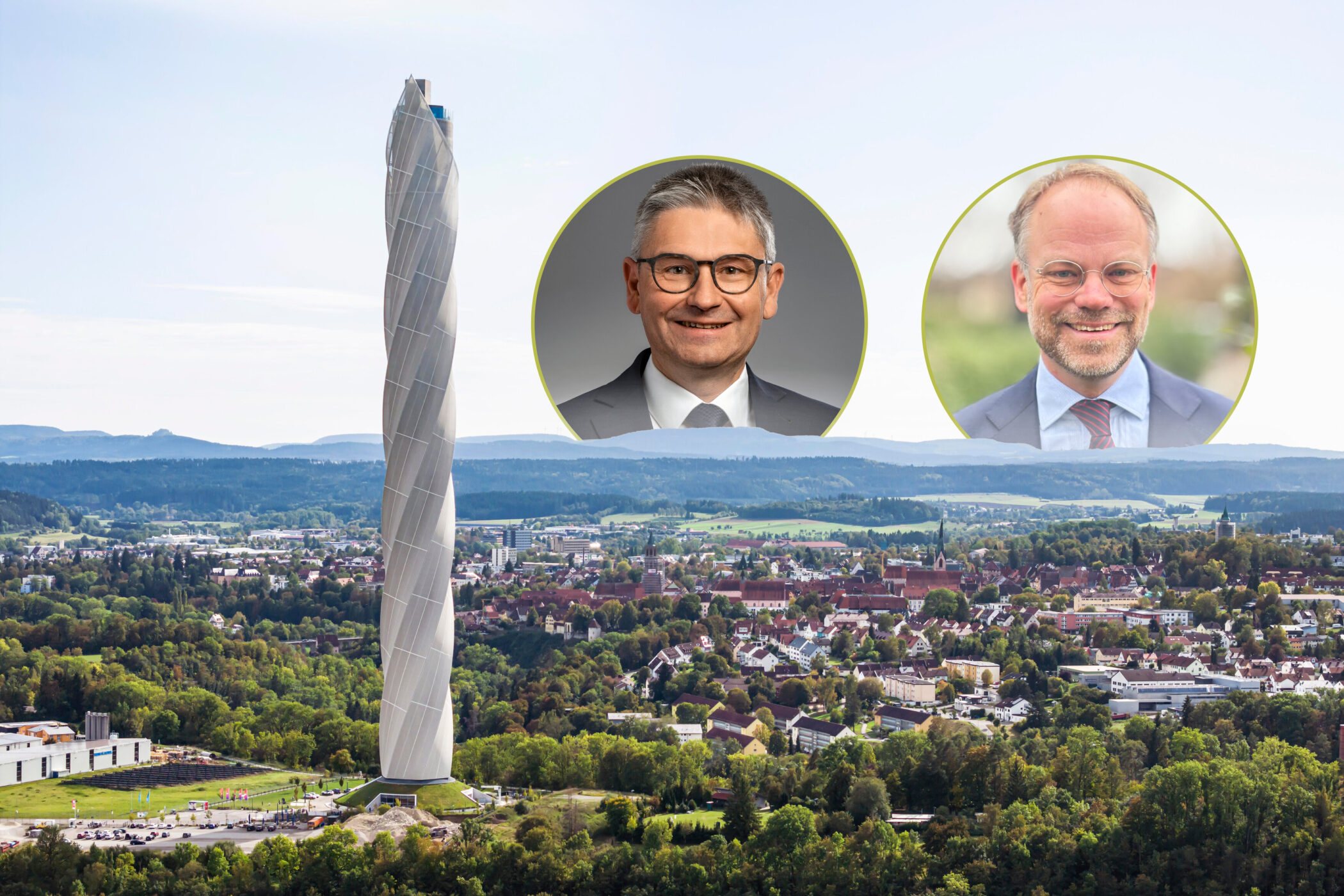 Der Testturm in Rottweil gehört auch zu den Wahrzeichen des Landkreises. Um den Chefposten im dortigen Landratsamt bewerben sich Frank Bonath (links) und Christoph Keckeisen.