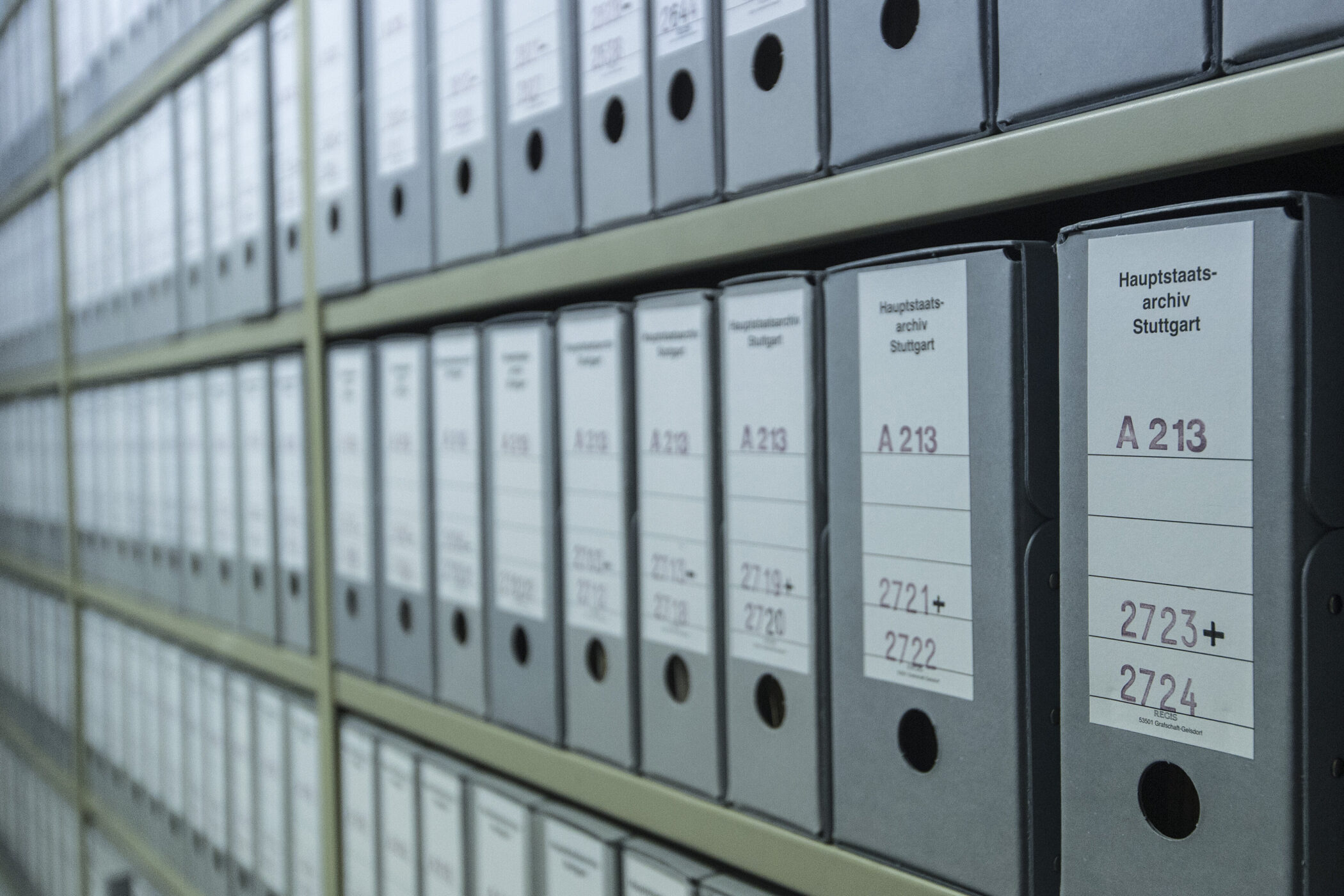 In Boxen verstaut liegen am im baden-württembergische Landesarchiv in Stuttgart archivierte Unterlagen.
