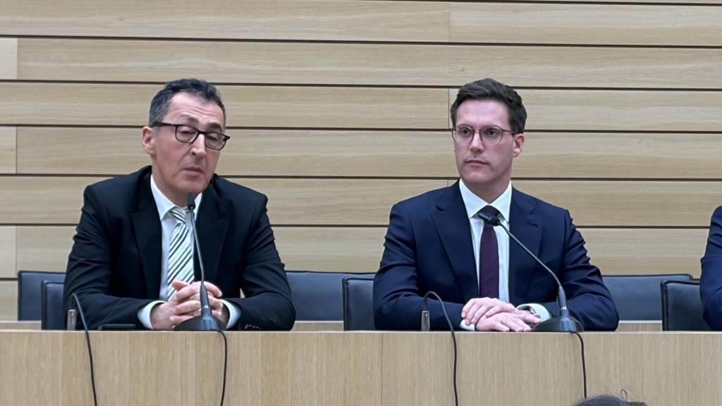 20.59 Uhr: Cem Özdemir (links im Bild) und Manuel Hagel bei der Landespressekonferenz.