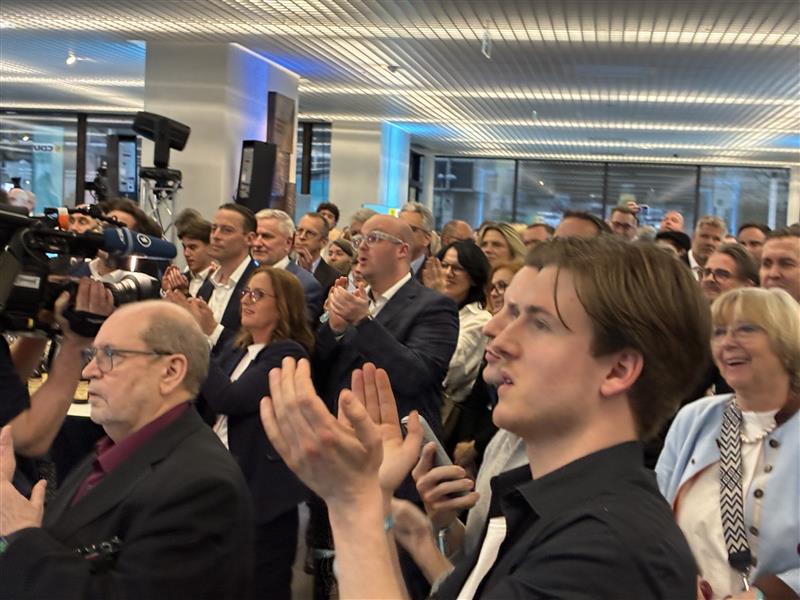 19.03 Uhr: Der Parlamentarische Geschäftsführer der CDU/CSU-Bundestagsfraktion, Steffen Bilger, lobt den Wahlkampf, auch von Manuel Hagel: „Es ist ein sehr gutes Ergebnis mit über 30 Prozent, leider haben die Grünen wohl noch mehr mobilisiert.“ Die „Schmutzkampagne“ wegen des Eva-Videos habe „eine gewissen Wirkung“ hinterlassen. Zweifel am Kandidaten lässt er nicht aufkommen: „Wir stehen voll hinter ihm.“ (bin)