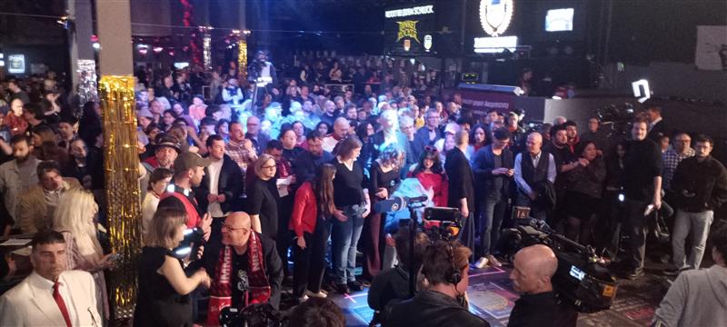 19.38 Uhr: Bei den Linken wird es dann doch lauter als nach den ersten Hochrechnungen. Nachdem alle anwesenden Kandidaten und Kandidatinnen von Landessprecher Elwis Capece auf die Bühne gebeten wurden, dürfen sie mit dem Mitgliedern und Anhängern im Saal die Internationale singen. (jüs)