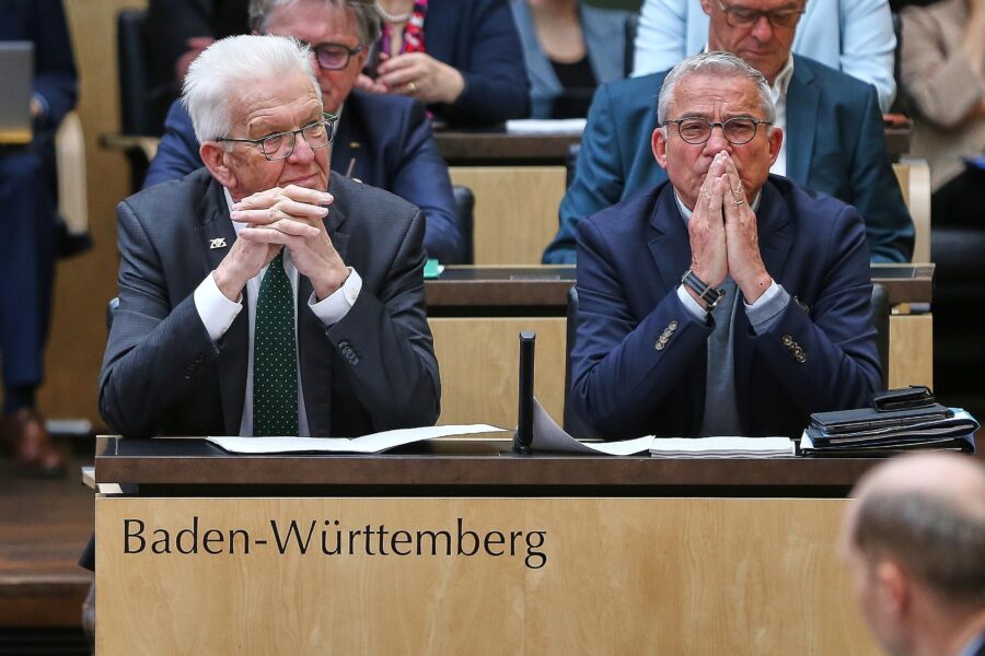 dpa/Bodo Schackow)Stuttgart/Berlin. Das bundesweite Vorgehen gegen die aktuell größte bekannte Gruppierung sogenannter Reichsbürger und Selbstverwalter hat auch Einsatzkräfte im Südwesten auf den Plan gerufen. Nach dem Verbot der Gruppe „Königreich Deutschland“ wurde laut Innenministerium ein Wohngebäude einer Führungsperson des Vereins im Regierungsbezirk Stuttgart durchsucht. „Das zeigt, wir sind eine wehrhafte Demokratie“, sagte Ministerpräsident Winfried Kretschmann (Grüne) in Stuttgart.
