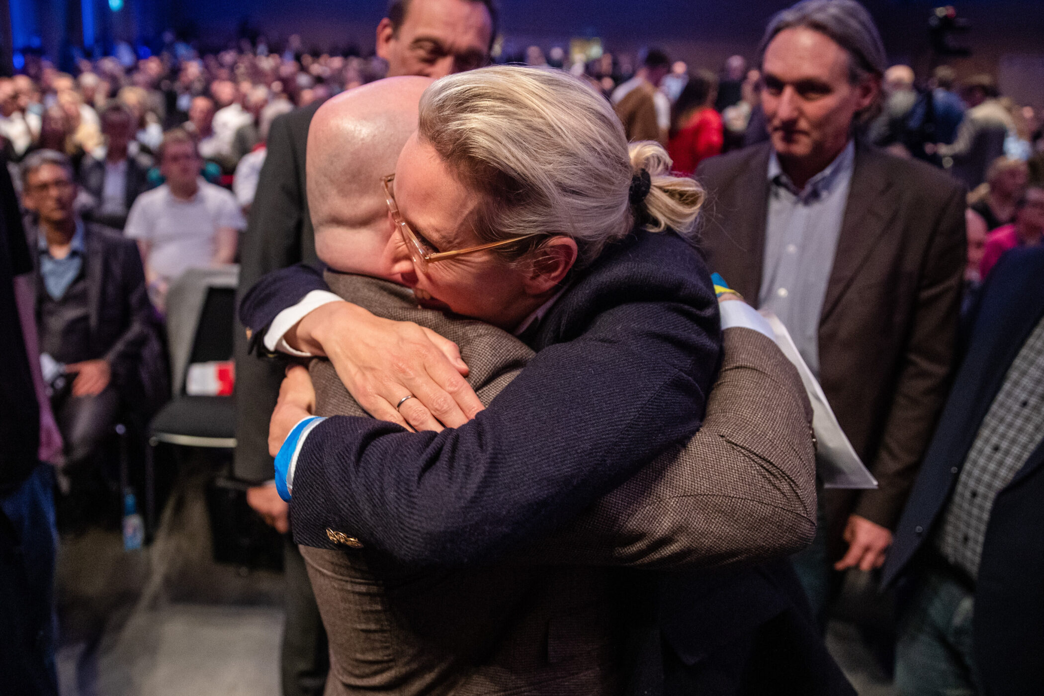 Alice Weidel und Markus Frohnmaier - hier bei dessen Wiederwahl als AfD-Co-Landesvorsitzender im Februar 2024 - gelten als enge Vertraute.