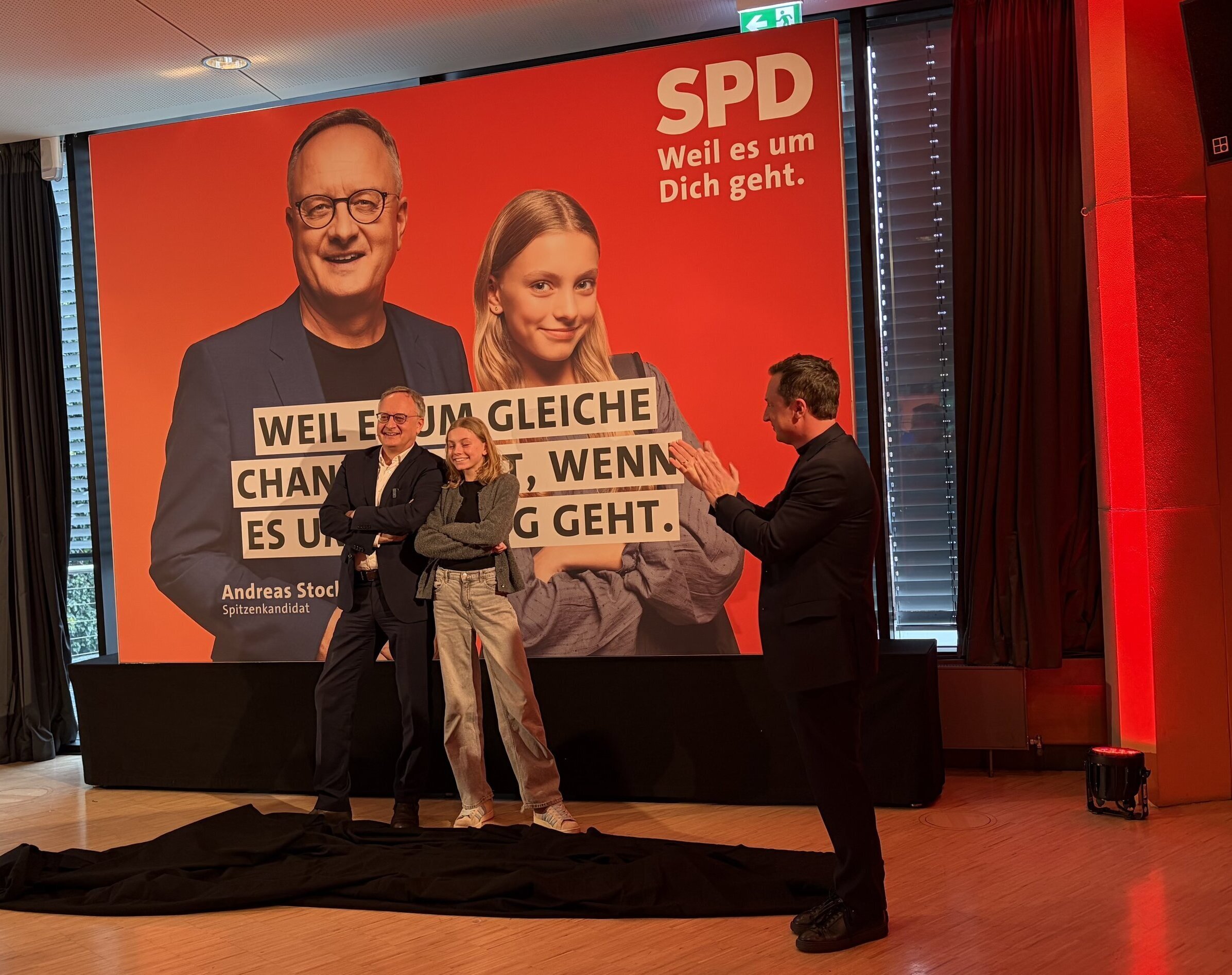„Veränderung ist möglich, wenn Politik den Menschen dient und kein Selbstzweck ist“, macht auch Generalsekretär Sascha Binder deutlich. Dass es für seine Partei nicht einfach wird, ist ihm ebenso klar wie Stoch. Der warnt jedoch davor, sich von Umfragewerten kirre machen zu lassen. Es gelte nun, mit den Menschen vor Ort zu sprechen. Ein wichtiges Ziel für Stoch ist auch, dass Rechtsextreme nicht im Parlament oder der Regierung sitzen. „Dafür werde ich bis zum letzten Tag kämpfen“, sagt der Spitzenkandidat. Und dazu gehört für ihn auch, nicht im Vorfeld, wie es die FDP getan hat, Koalitionen mit demokratischen Parteien auszuschließen. Die hätten die Zeichen der Zeit nicht erkannt, sagt Stoch, der klar machen will, dass Hass und Hetze keine Lösungen sind.
