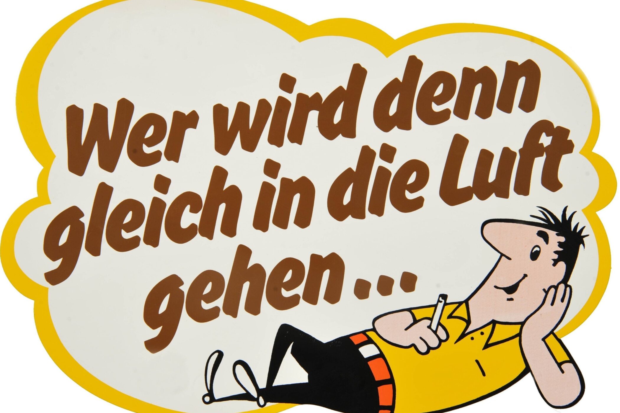 „Wer wird denn gleich in die Luft gehen?“ Zum Beispiel eine Rakete nach dem Countdown. Und Kanzler Merz beim eigenhändigen Abflug zu Hochzeiten oder auch in Reaktion auf eine unangenehme Journalisten-Frage. Womit wir beim Thema wären, dem HB-Männchen. Es ist eine berühmte Werbefigur der Wirtschaftswunderzeit und nicht nur in der älteren Generation bis heute sprichwörtlich. Das HB-Männchen gerät rasch in Rage. Im legendären Werbespot folgt dann der besänftigende Slogan: „Wer wird denn gleich in die Luft gehen? Greife lieber zur HB!“ Die Trickfilmfigur nimmt eine Zigarette und bekommt sich und alles sofort wieder in den Griff.