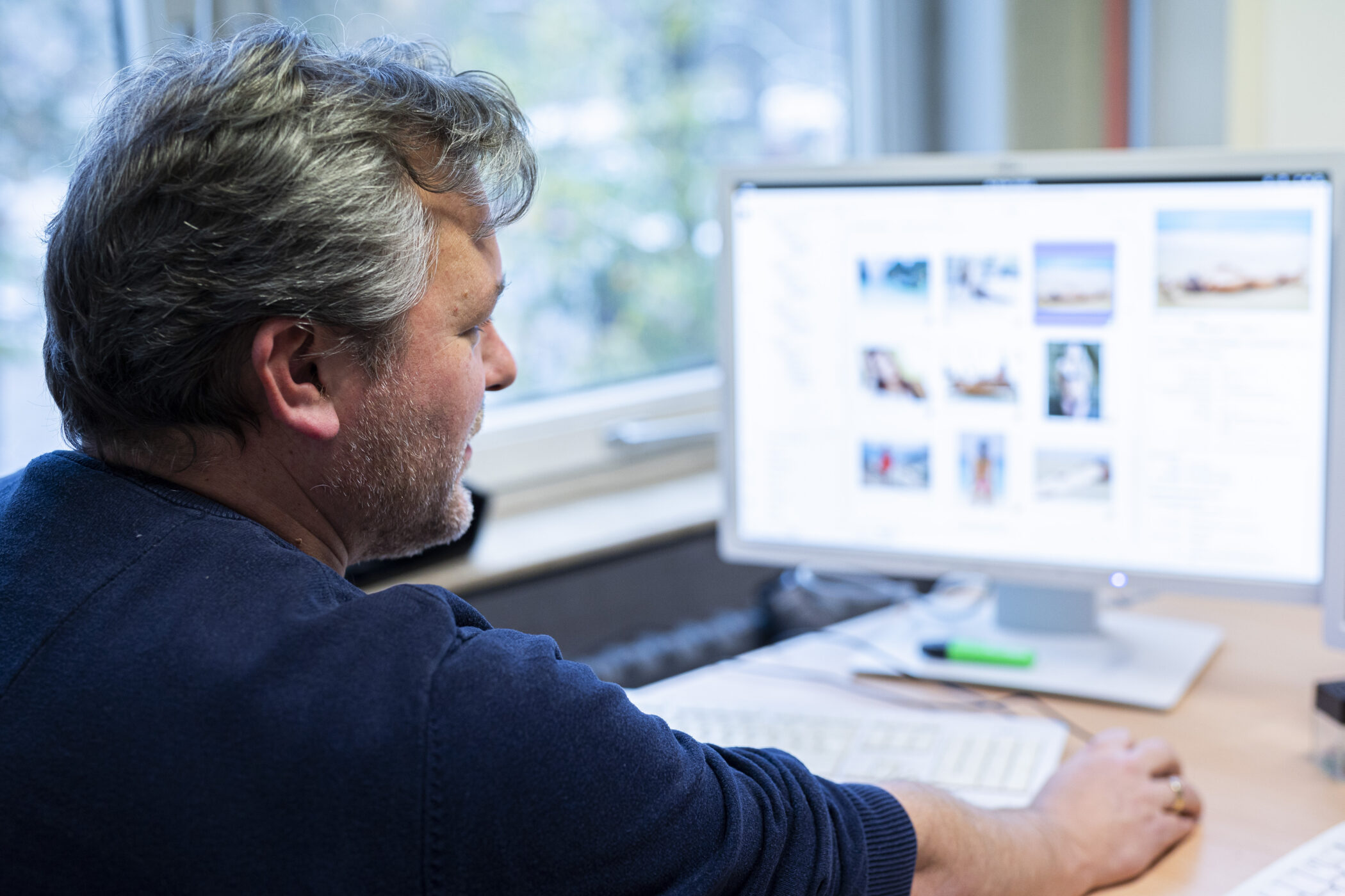 Ein Ermittler der Polizei sichtet Bilder mit Verdacht auf kinderpornografischen Inhalt.