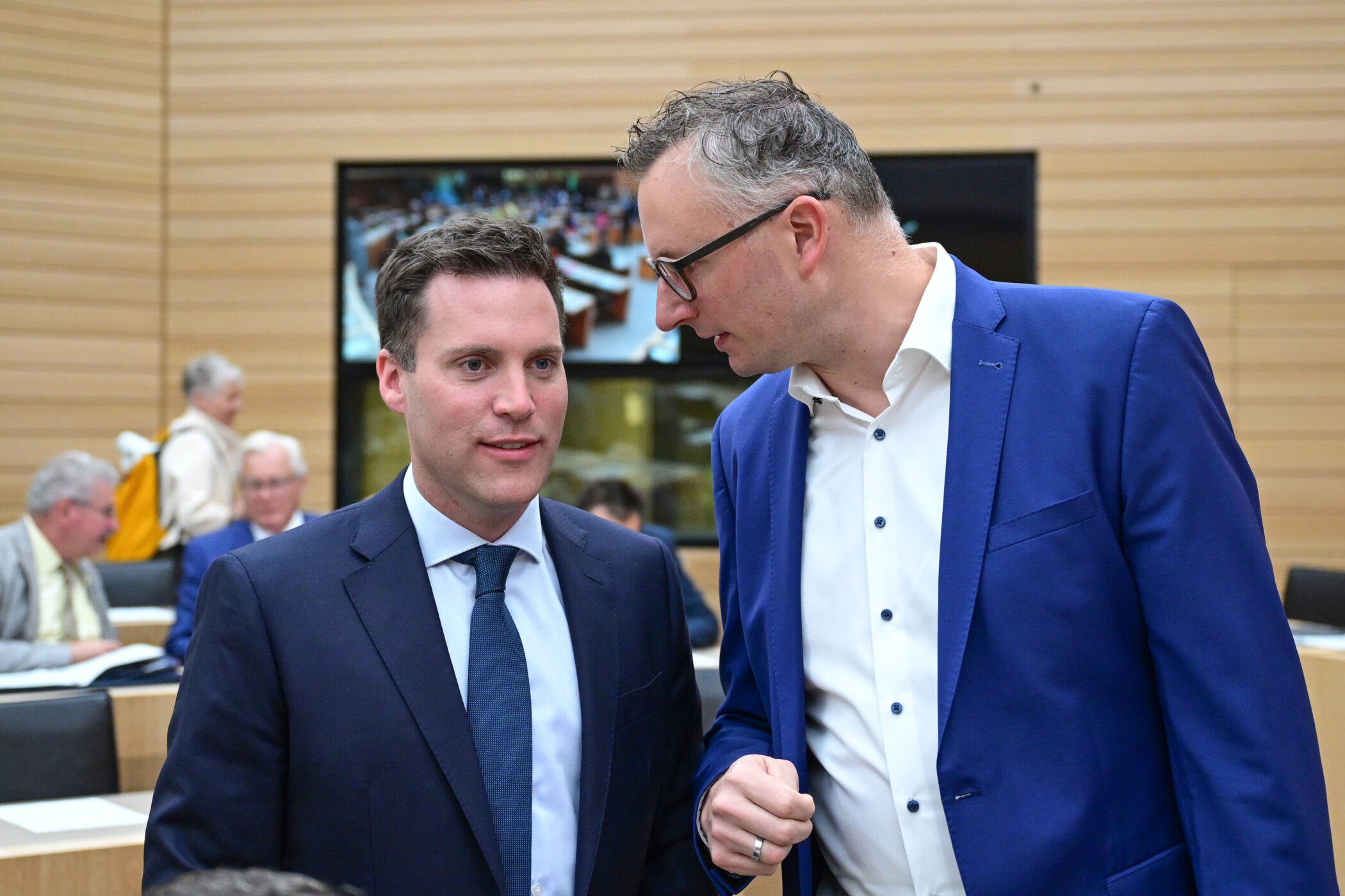 Manuel Hagel (l), CDU-Fraktionsvorsitzender im Landtag von Baden-Württemberg, und Andreas Schwarz, Fraktionsvorsitzender von Bündnis 90/Die Grünen im Landtag von Baden-Württemberg, haben sich in drei wichtigen Punkten geeinigt.