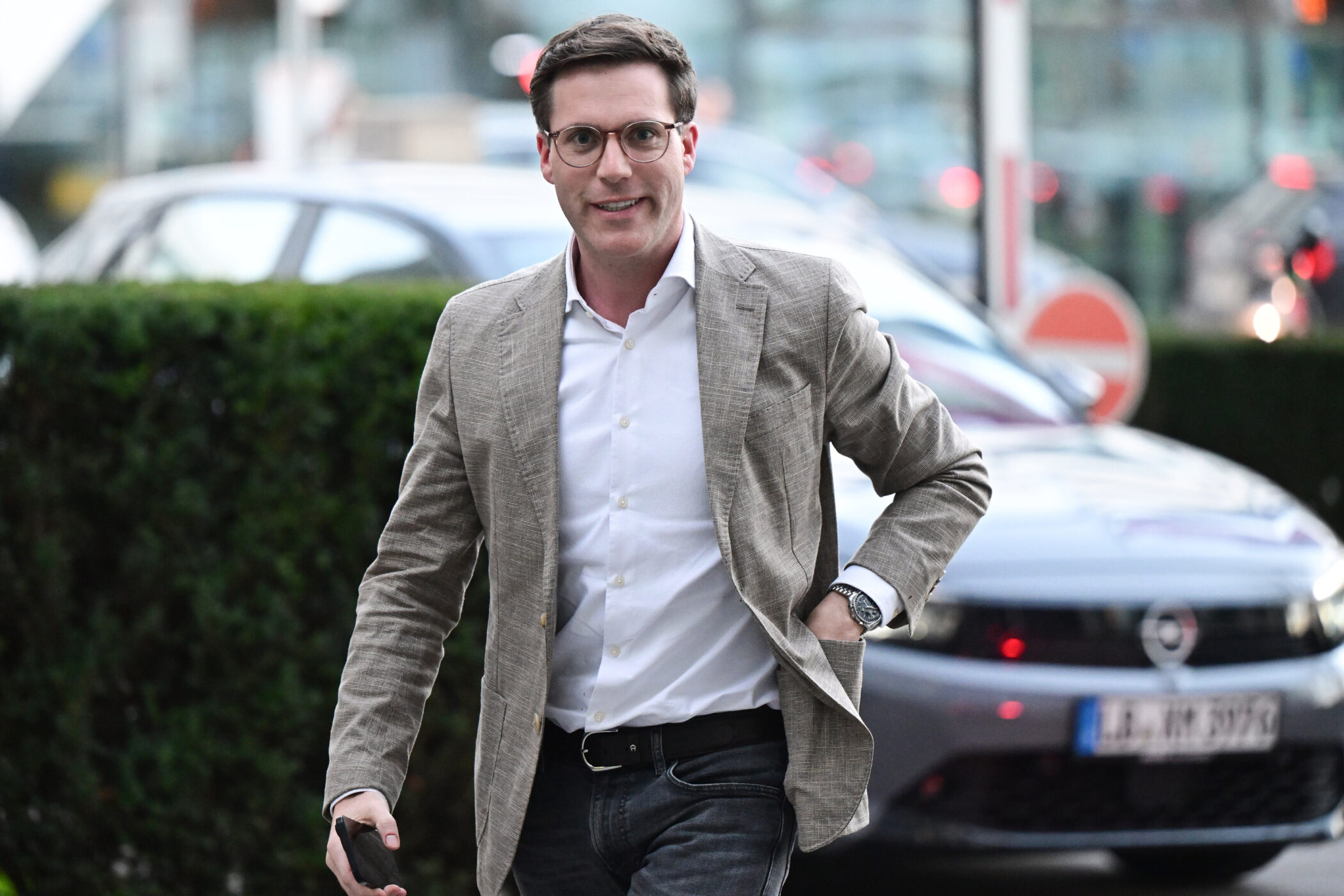 Manuel Hagel, Landesvorsitzender der CDU Baden-Württemberg und Spitzenkandidat für die Landtagswahl in Baden-Württemberg 2026, geht vier Tage nach der Landtagswahl in die Landeszentrale seiner Partei zu einer Sitzung des Vorstands.