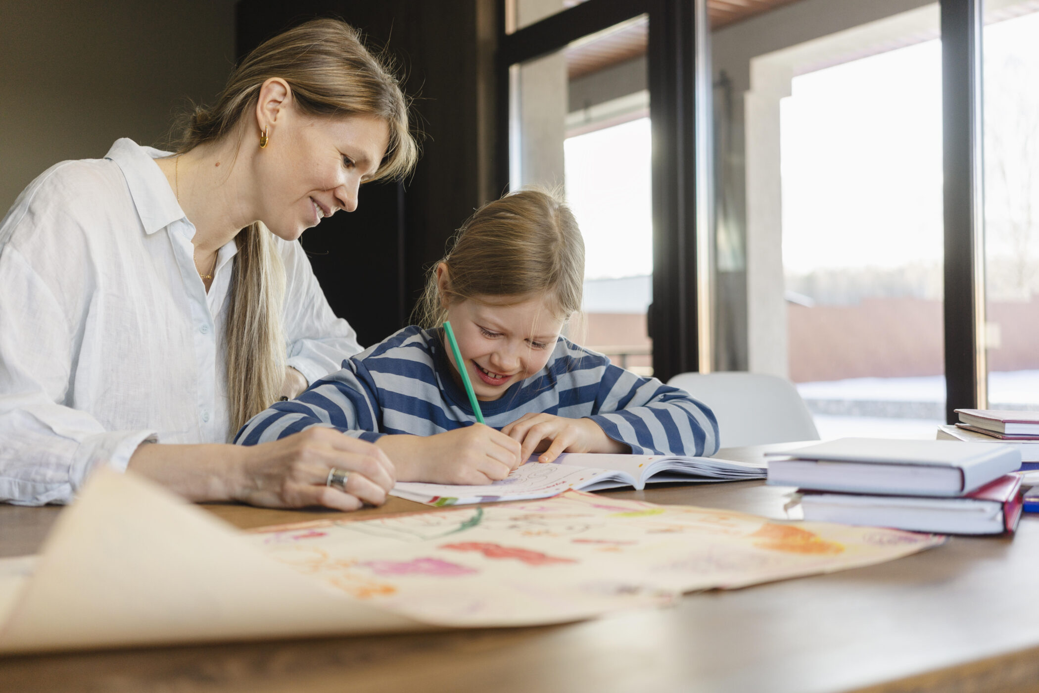 Eltern können ihre Kinder durch die Hilfe bei den Hausaufgaben unterstützten.