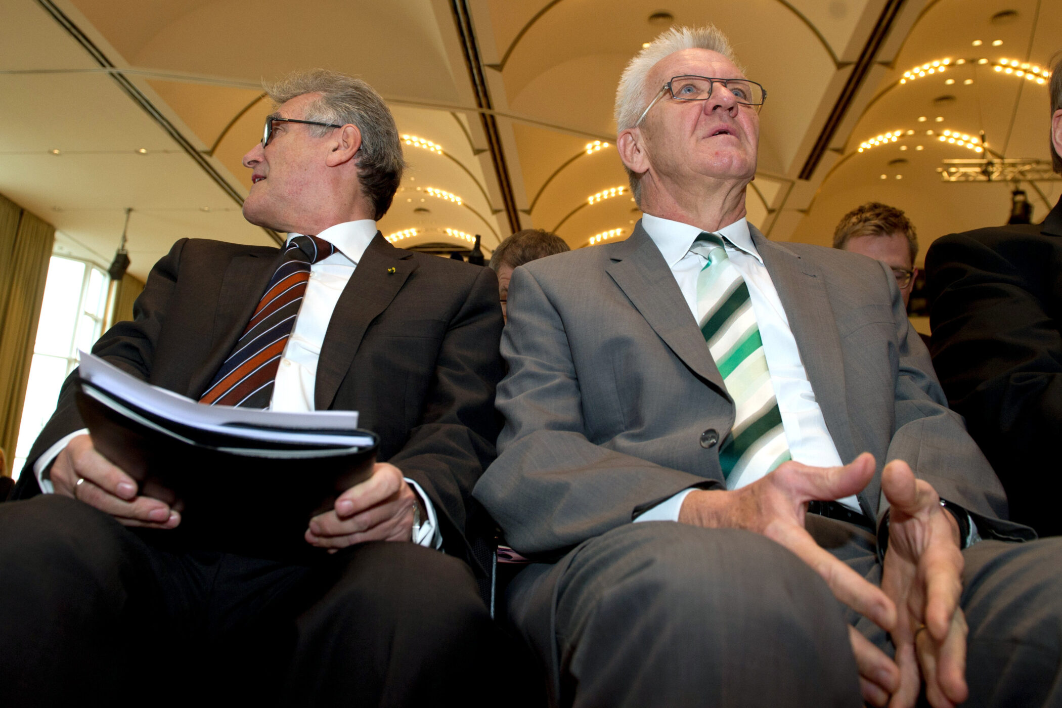 Das waren noch Zeiten, als sich Winfried Kretschmann (rechts) mit dem Beamtenbund stritt - im Bild der damalige Verbandschef Volker Stich. Inzwischen Ministerpräsident der größte Fan der Beamten.