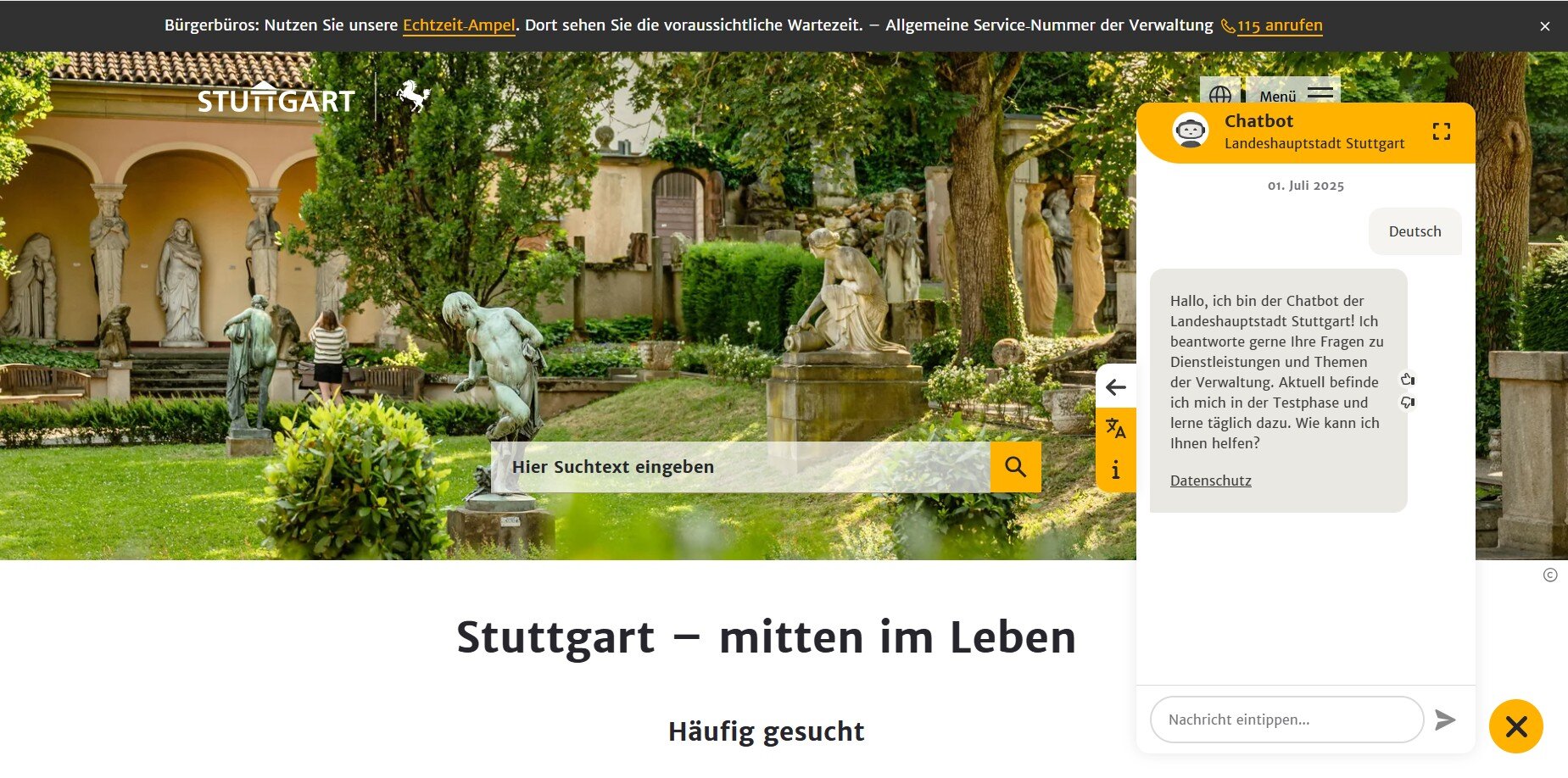 In Stuttgart und anderen Städten im Südwesten beantwortet ein Chatbot viele Fragen der Bürger an die Verwaltung.