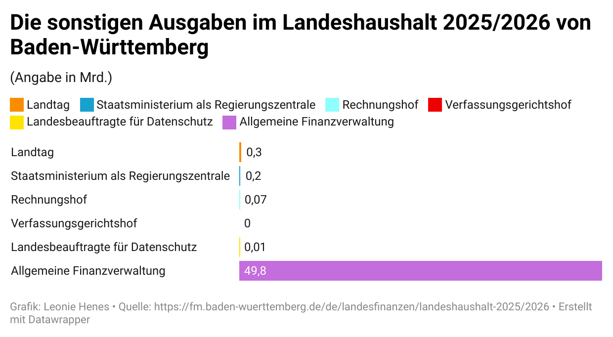 Der Landtag erhält 296 Millionen Euro. Es folgen das Staatsministerium als Regierungszentrale mit 151,5 Millionen Euro und der Rechnungshof mit 67 Millionen Euro.