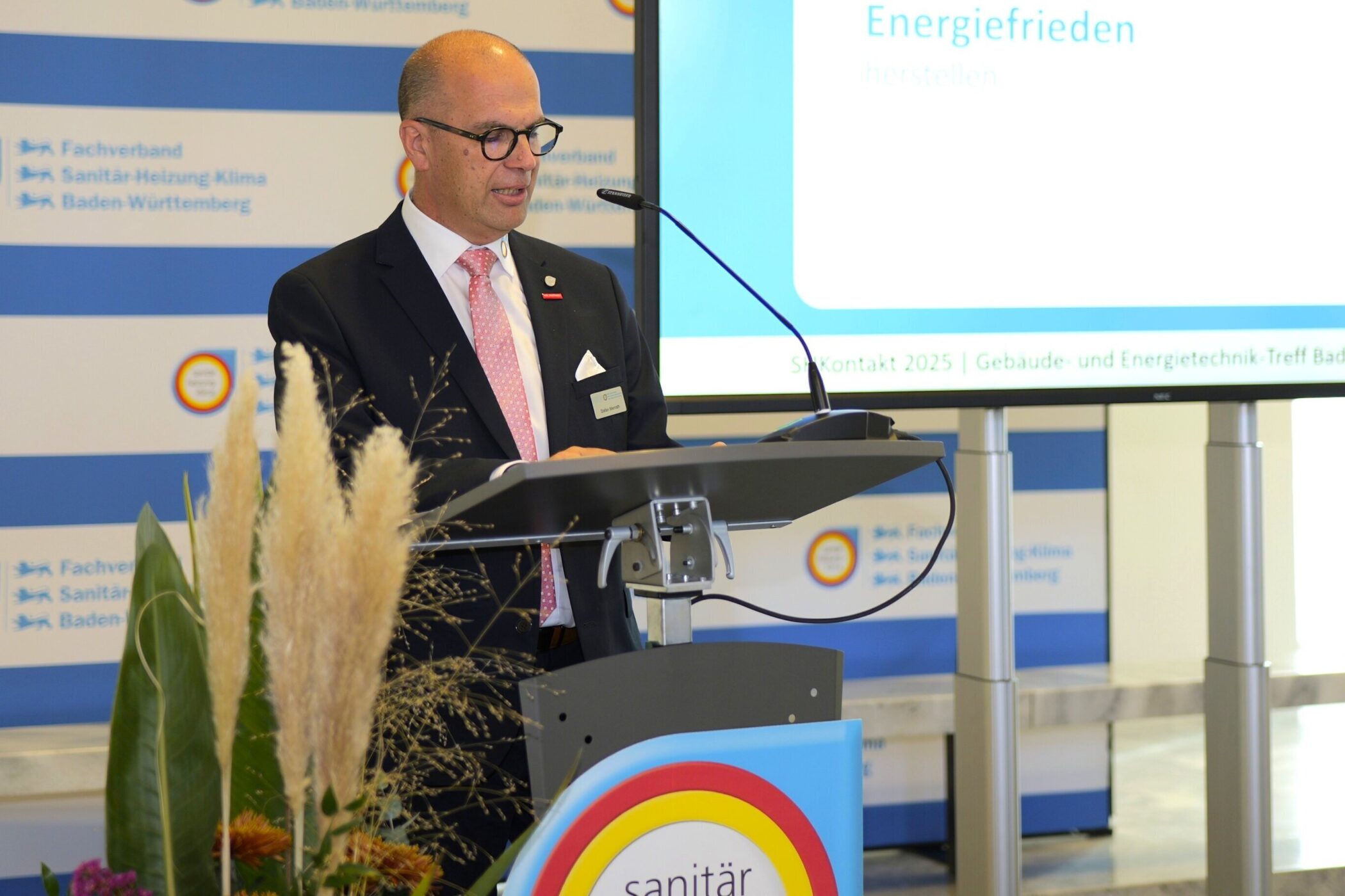 Stefan Menrath, der Vorsitzende des Fachverbands Sanitär, Heizung, Klima Baden-Württemberg will Klimaschutz mit Wettbewerbsfähigkeit und Akzeptanz in der Bevölkerung verbinden.